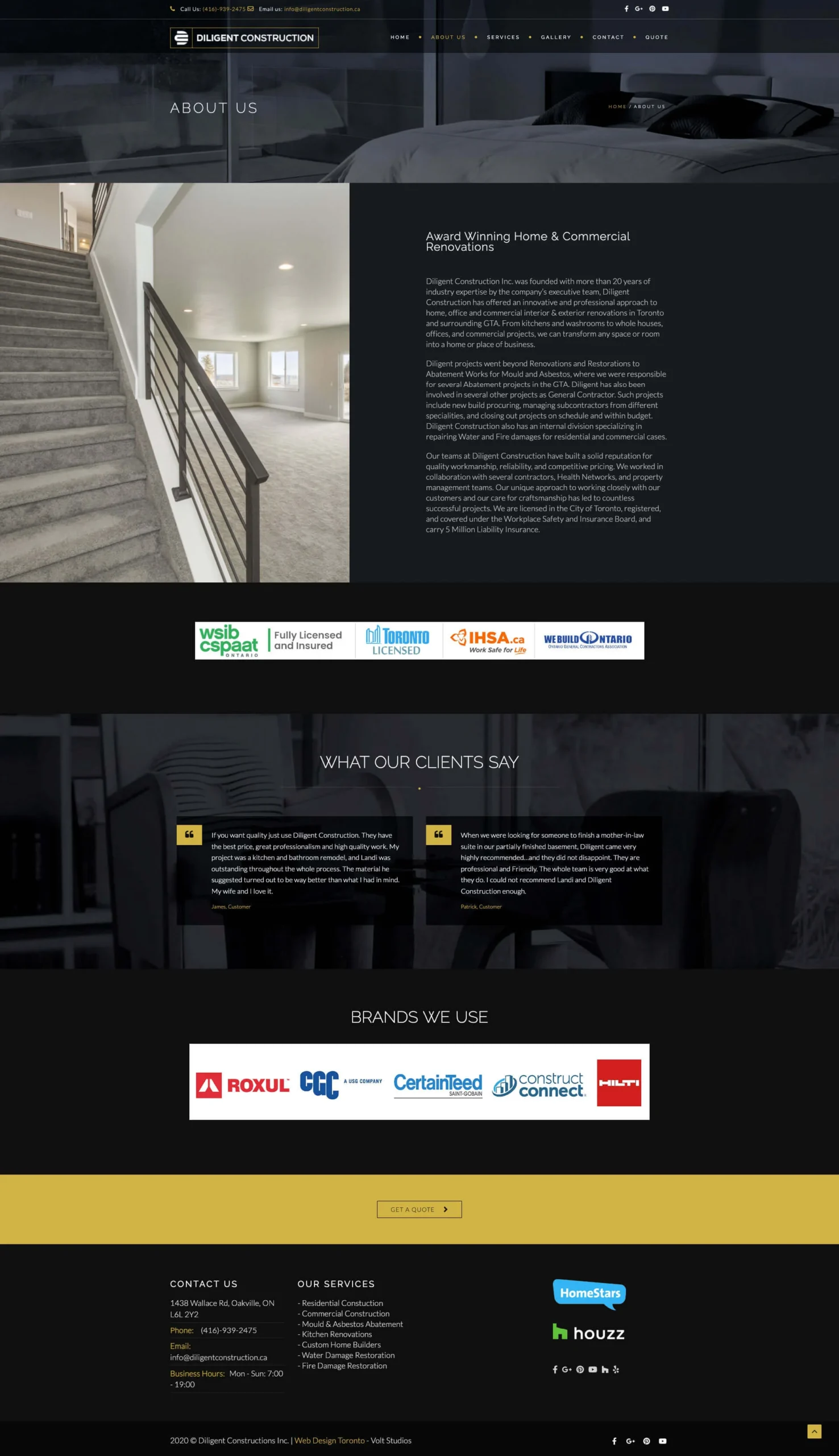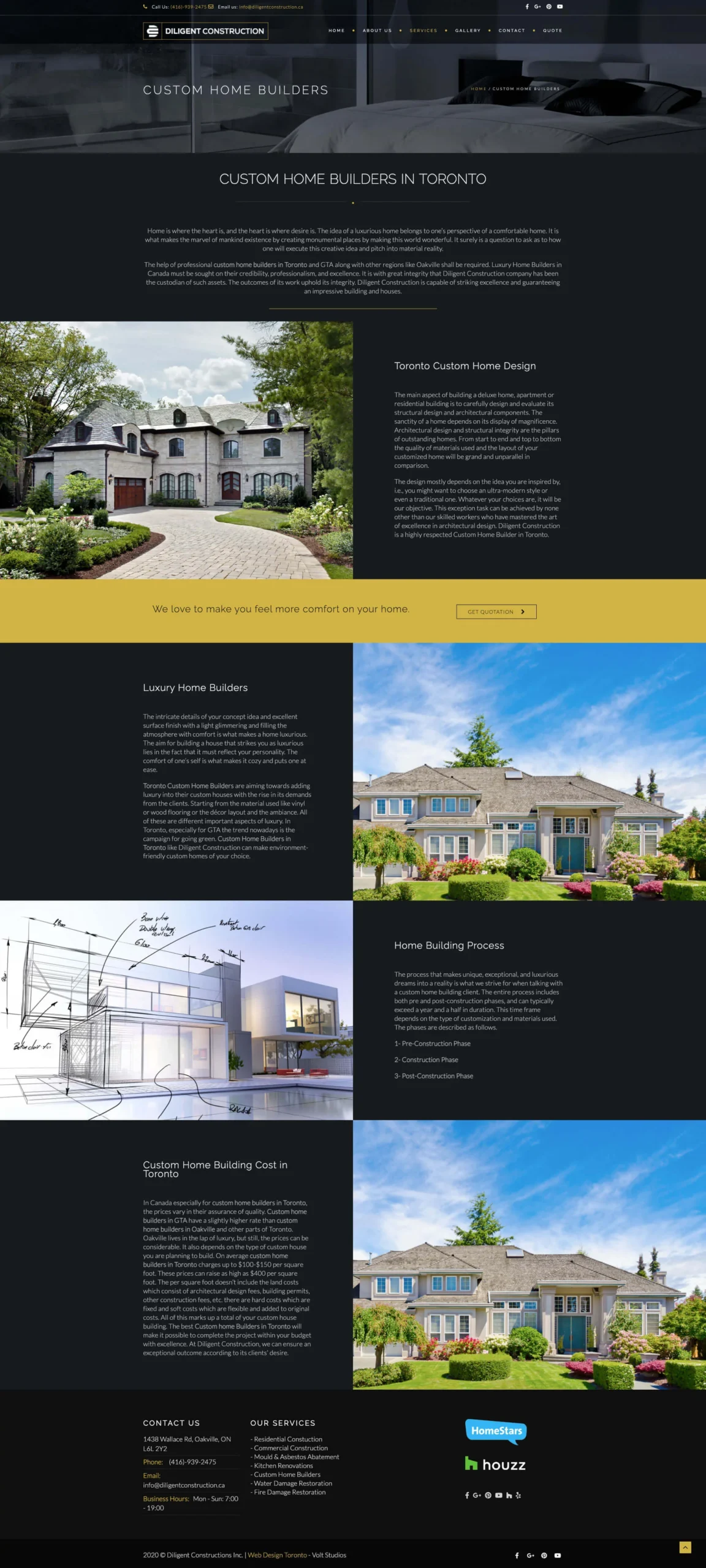 Diligent Construction provides comprehensive construction services including renovations, commercial build-outs, and project management. The goal was to showcase their portfolio, generate qualified project inquiries, and establish authority in competitive Ontario construction markets.