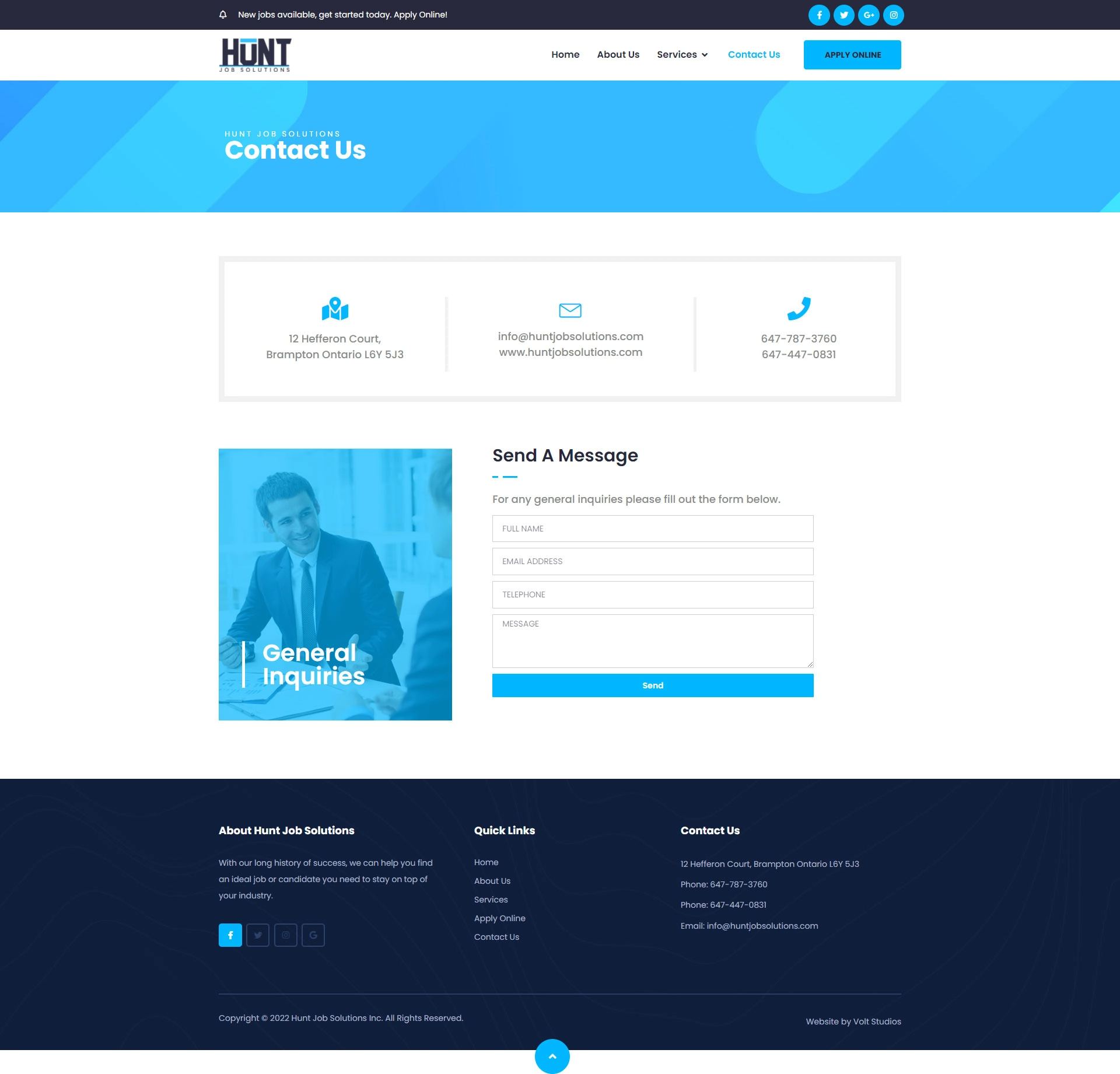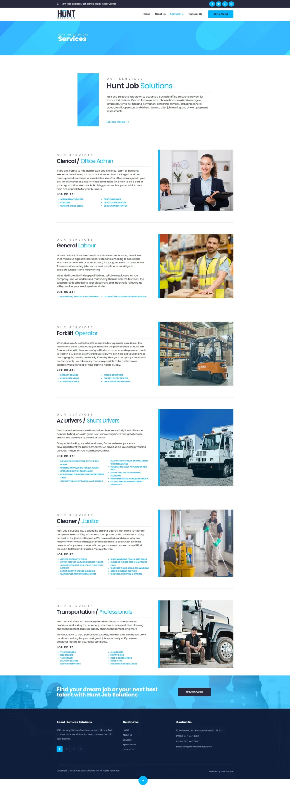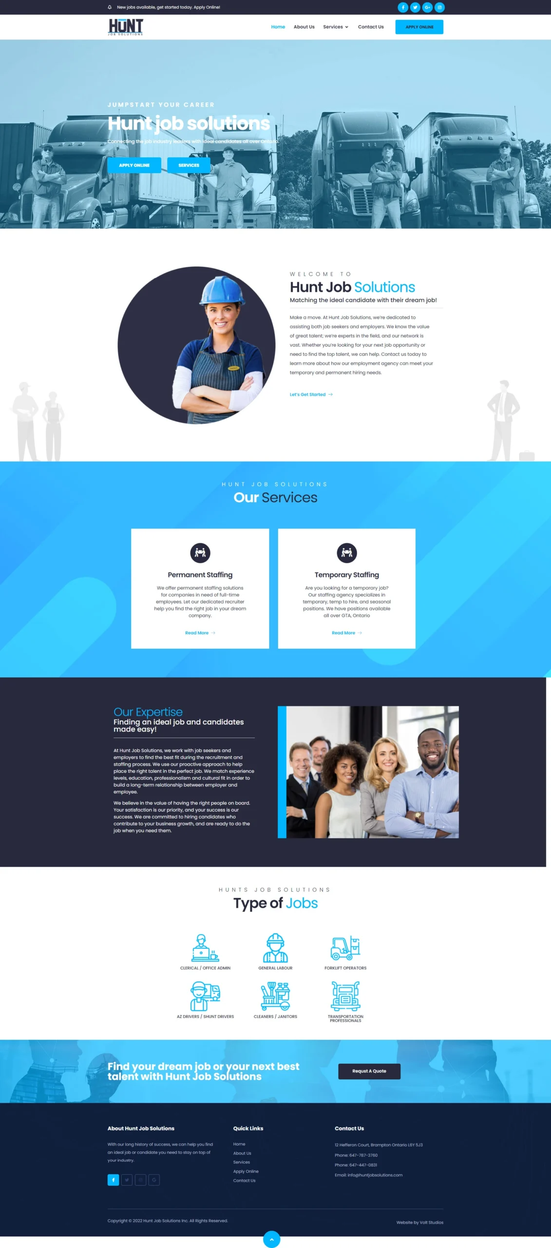 Hunt Job Solutions provides recruitment and staffing services across multiple industries in Ontario. The objective was to attract both employer clients needing talent and qualified candidates seeking opportunities while streamlining the recruitment process and establishing the firm as the go-to staffing partner in their market.