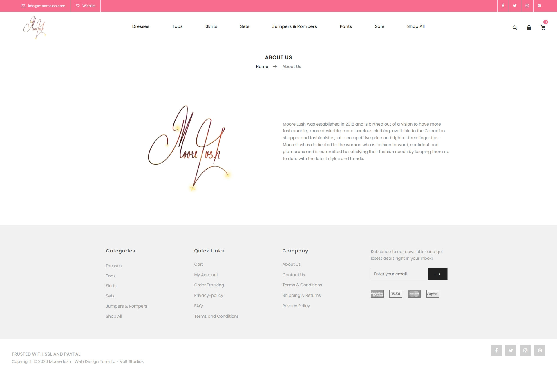 Moorelush Clothing offers curated contemporary fashion for modern consumers seeking on-trend styles and quality pieces. The goal was to create compelling online shopping experience that drives sales and builds brand loyalty in competitive Canadian fashion market while establishing Moorelush as go-to destination for contemporary style.