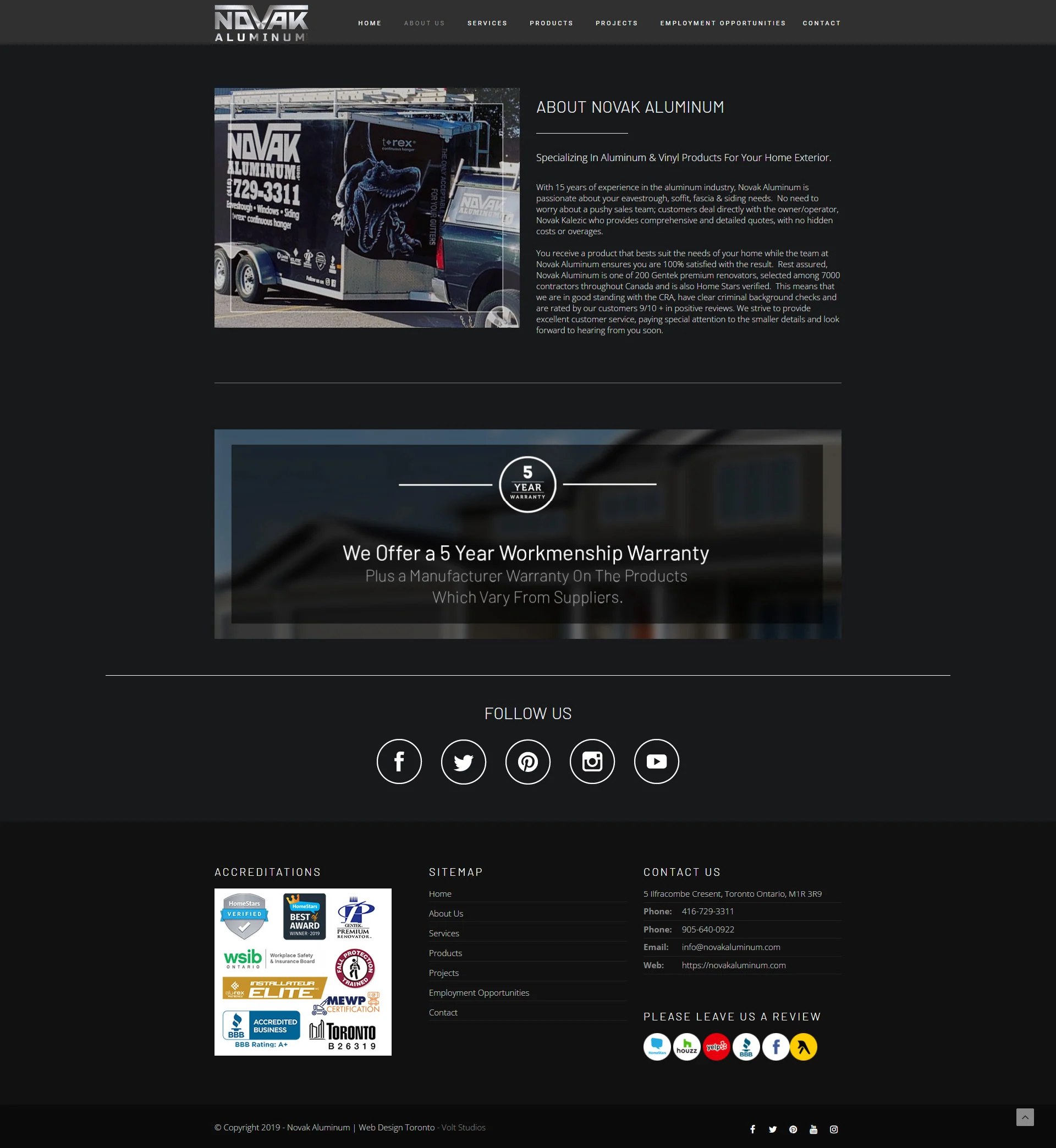 Novak Aluminium provides aluminum window, door, and railing installations for residential and commercial properties across Ontario. The goal was to generate installation projects while establishing the company as the region’s aluminum specialists rather than general contractors dabbling in aluminum work.